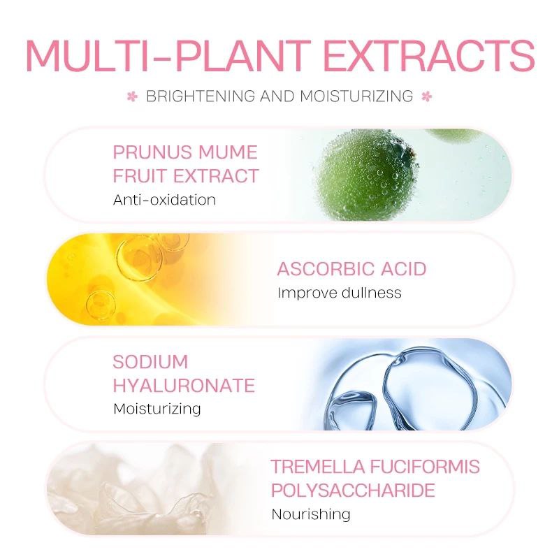 این سرم با عصاره خالص شکوفه گیلاس ژاپنی (Sakura Extract) و ترکیبات گیاهی چندگانه، یکی از بهترین انتخابها برای جوانسازی، روشنسازی و آبرسانی پوسته.